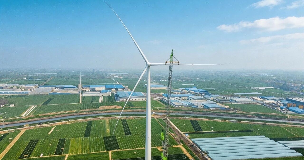 逐风筑能!金乡县高堂村风电项目首台风机吊装成功