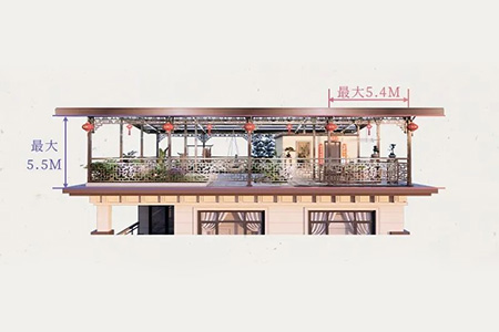 以祥云瑞彩作装饰,融会福文化与新中式美学,营造典雅诗意的屋顶空间,传递吉祥、福瑞到万家。