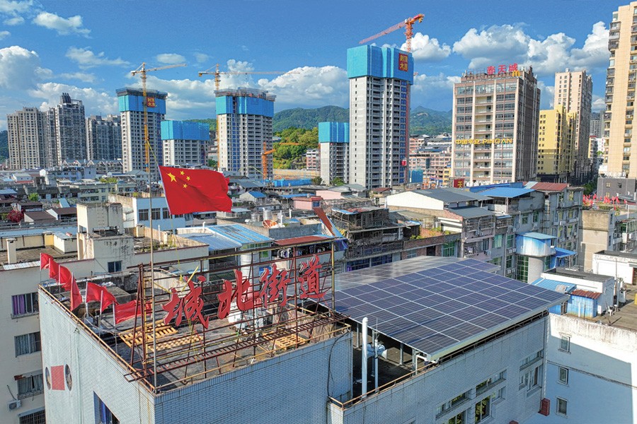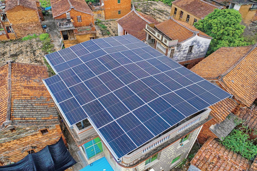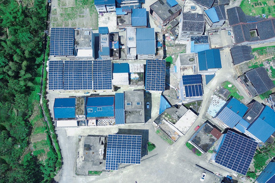 光伏屋顶如金色的麒麟,源源不断输送绿能,闪闪发光如屋顶堆金。