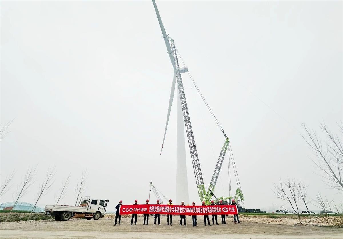 3月14日,由M88股份承建的时代绿能金乡县高堂村210MW陆上风电EPC总承包项目首台风电机顺利完成吊装。这一关键节点的达成,标志着项目向着全容量并网目标迈出了坚实一步。